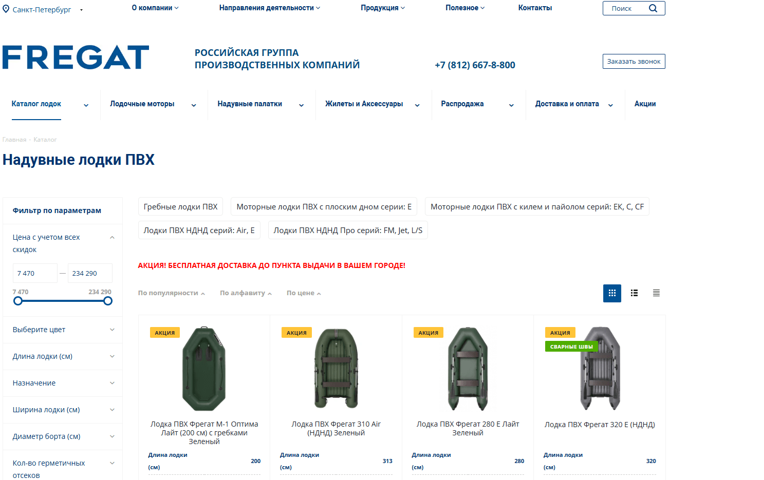 Помогли создать крупнейший интернет магазин надувных лодок и моторов - "Фрегат"