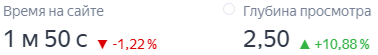 - Высокая глубина просмотра сайта и время пользователя на сайте (ниже пример этих KPI из Яндекс.Метрики)